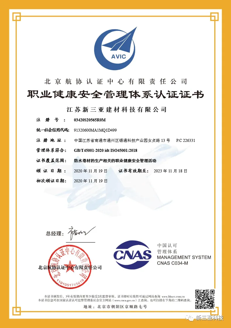 2020年11月10日-12日,認證機構審核專家對我司質量方針、質量目標的完成情況以及全過程的控制情況、對職業(yè)健康安全管理、環(huán)境管理進行了為期三天系統(tǒng)的檢查,經過嚴格審核,專家一致通過我司的認證注冊資格,并于2020年11月19日正式頒發(fā)ISO9001:2015質量管理體系證書;ISO14001:2015環(huán)境管理體系證書;ISO45001:2018職業(yè)健康安全管理體系證書。